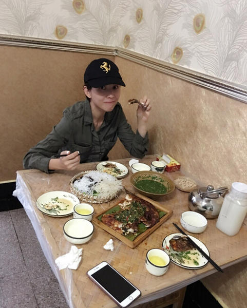 蔡少芬拍戏间隙游云南 一路都在吃不停